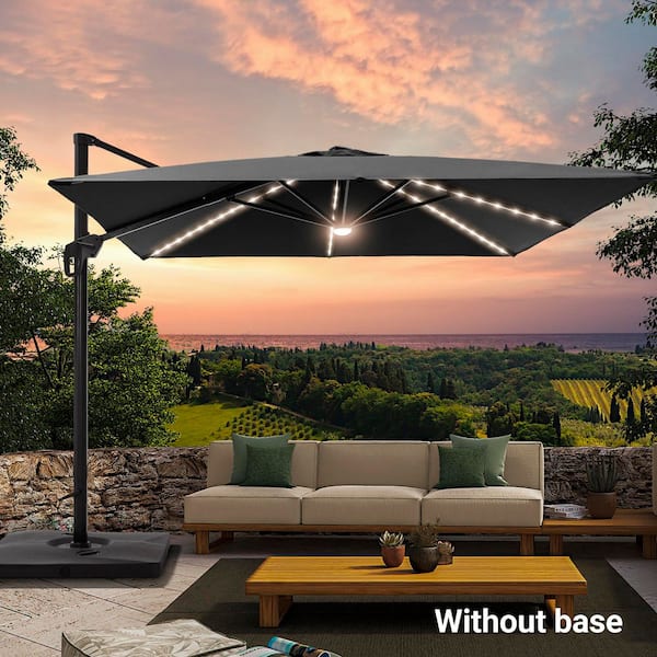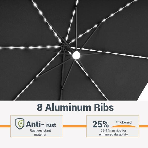 10 ft. Square Outdoor Aluminum Frame Cantilever Solar LED 360° Rotation System Patio Umbrella in Black