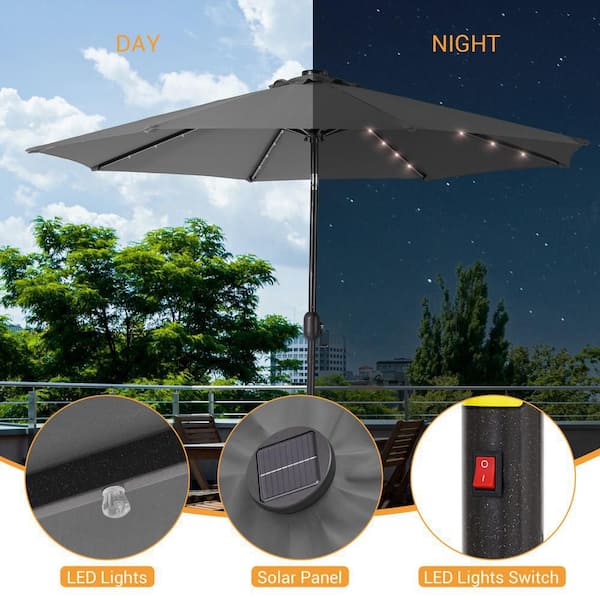 10 ft. Steel Solar-powered Round Outdoor Market Patio Umbrella with Crank in Anthracite