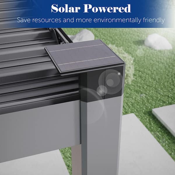 10 ft. x 10 ft. Modern All-Aluminum Pergola with Detachable Control Panel LED and Hand Crank Louvers, Grey
