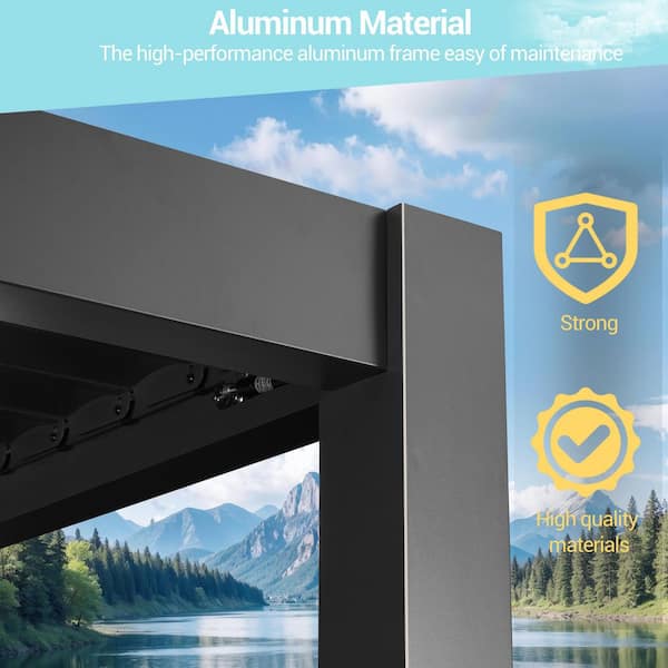10 ft. x 10 ft. Modern Aluminum Frame Pergola for Outdoor Garden with Adjustable Louvered Roof, Charcoal Gray