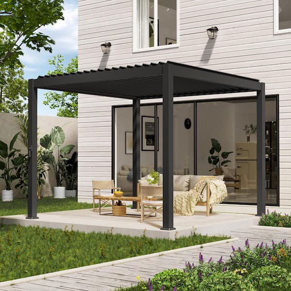 10 ft. x 10 ft. Modern Aluminum Frame Pergola for Outdoor Garden with Adjustable Louvered Roof, Gray
