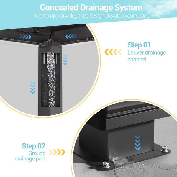10 ft. x 10 ft. Modern Aluminum Pergola with Adjustable Louvers, LED Lights and Solar Charging, Charcoal Gray