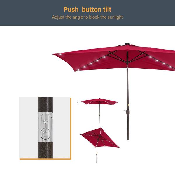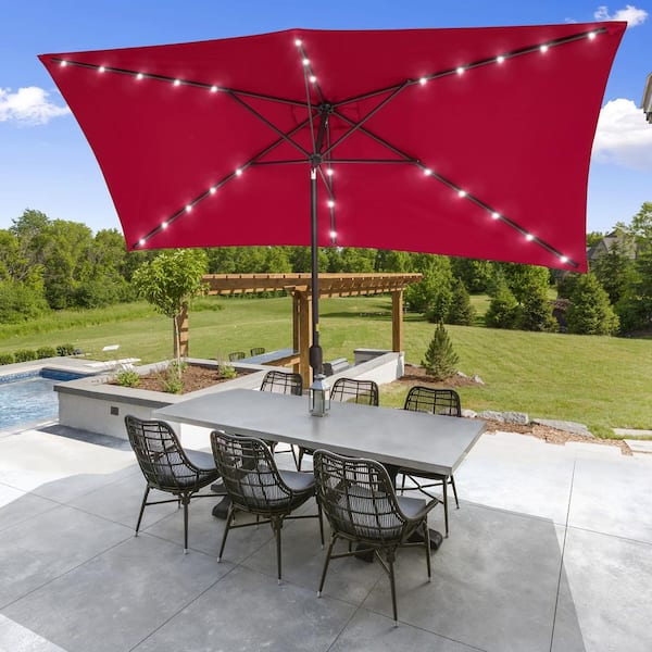 10 ft. x 6.5 ft. Solar LED Rectangle Market Aluminum Pole Patio Umbrellas with Solar Lights, Tilt Button in Venetian Red