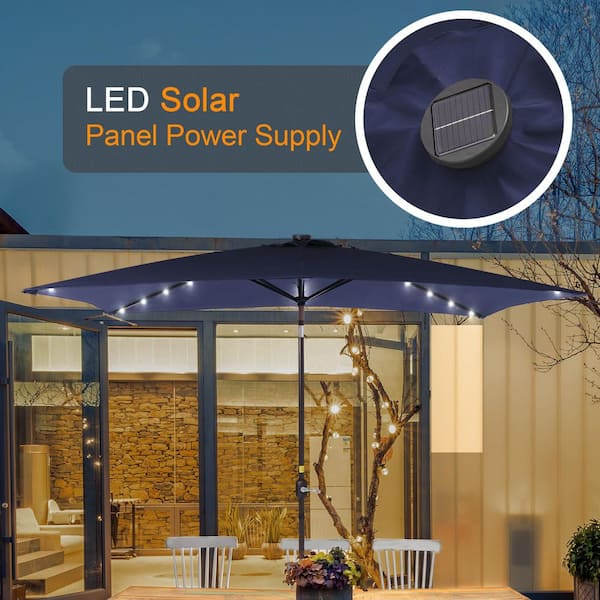 10 ft. x 6.5 ft. Solar LED Rectangle Market Steel Pole Patio Umbrellas with Solar Lights, Tilt Button in Royal Blue