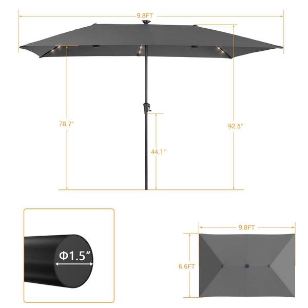 10 ft. x 6.5 ft. Steel LED Large Double-Sided Rectangular Outdoor Market Patio Umbrella with Crank in Anthracite