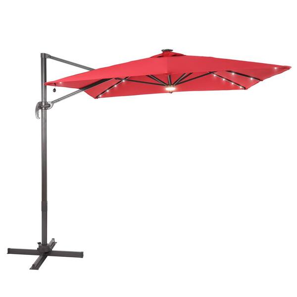 10 ft. x 8 ft. Outdoor Rectangular Cantilever LED Patio Umbrella, 240 g Solution-Dyed Fabric Aluminum Frame in Rust Red