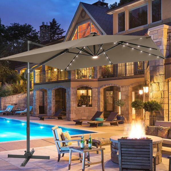 10 ft. x 8 ft. Outdoor Rectangular Cantilever LED Patio Umbrella, 240 g Solution-Dyed Fabric Aluminum Frame in Taupe