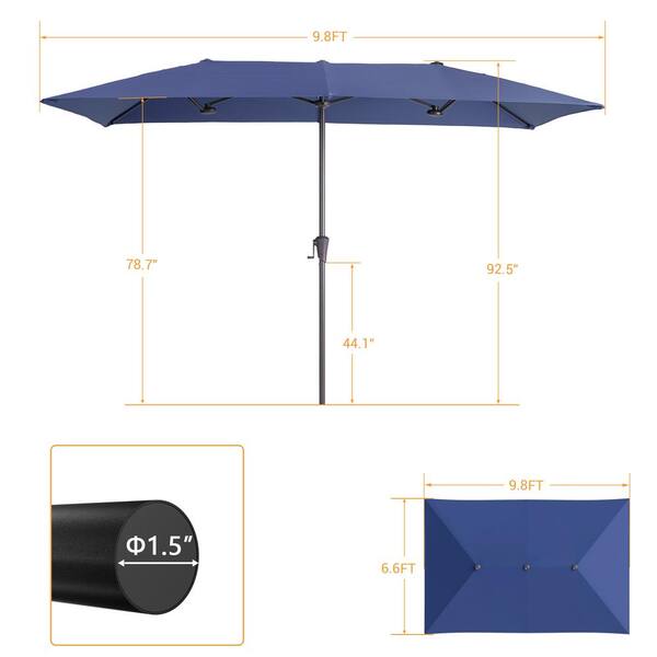 10 x 6.5 ft. Steel Large Double-Sided Outdoor Market Umbrella Patio Umbrella with Crank in Navy Blue