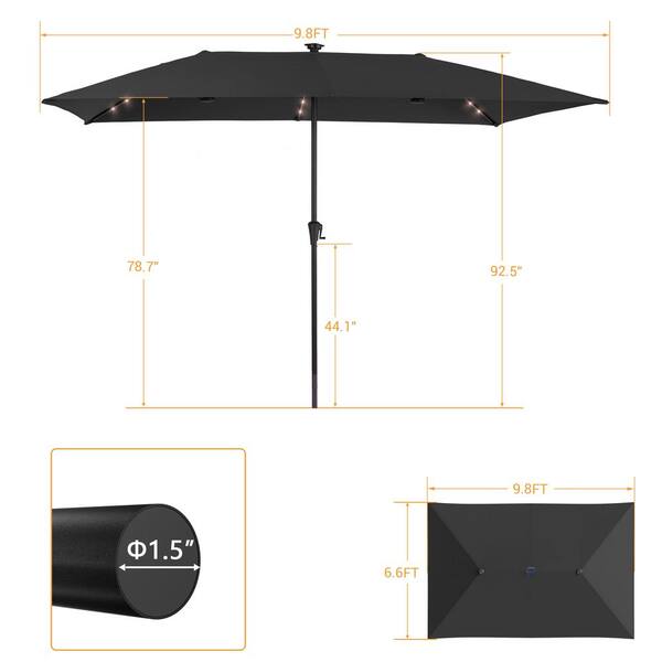 10 x 6.5 ft. Steel Solar-powered Large Double-Sided Rectangular Outdoor Market Patio Umbrella with Crank in Black