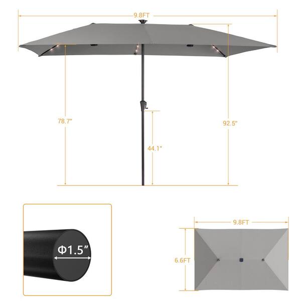 10 x 6.5 ft. Steel Solar-powered Large Double-Sided Rectangular Outdoor Market Patio Umbrella with Crank in Gray