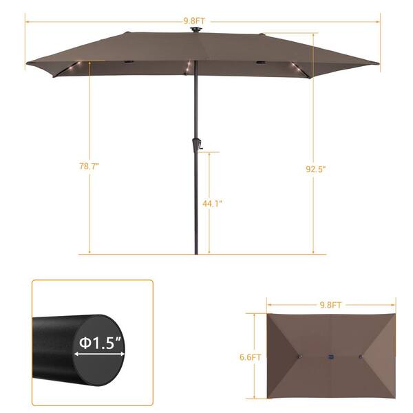 10 x 6.5 ft. Steel Solar-powered Large Double-Sided Rectangular Outdoor Market Patio Umbrella with Crank in Taupe