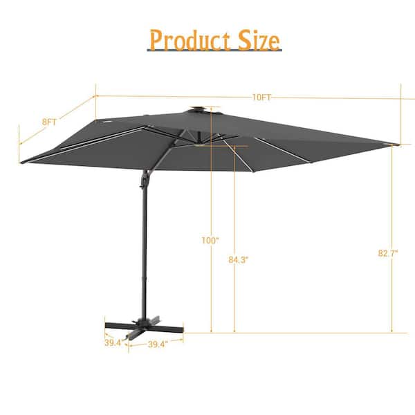 10 x 8 ft. Metal LED Rectangle Cantilever Patio Umbrella Solution-Dyed Fabric and 360° Rotation System in Anthracite