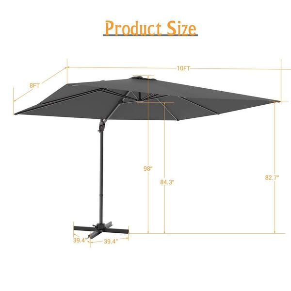 10 x 8 ft. Metal Rectangle Cantilever Patio Umbrella Solution-Dyed Fabric and 360° Rotation System in Anthracite