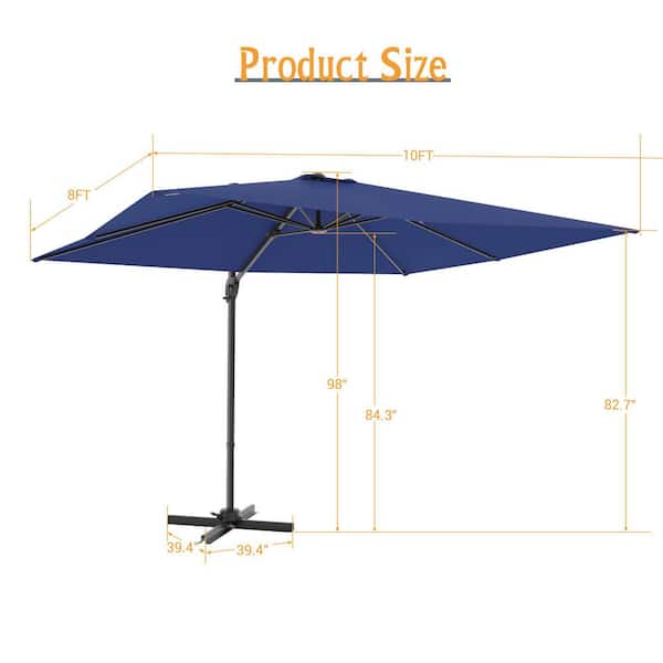 10 x 8 ft. Metal Rectangle Cantilever Patio Umbrella Solution-Dyed Fabric and 360° Rotation System in Navy Blue