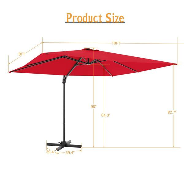 10 x 8 ft. Metal Rectangle Cantilever Patio Umbrella Solution-Dyed Fabric and 360° Rotation System in Red