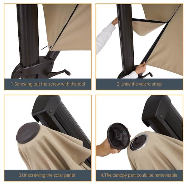 11 Feet Patio Cantilever Umbrella With a Base, Outdoor Offset Hanging 360° Rotation Aluminum Umbrellas, Sand