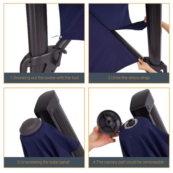 11 Feet Patio Cantilever Umbrella With a Stand, Outdoor Offset Hanging 360° Rotation Aluminum Umbrellas, Navy Blue