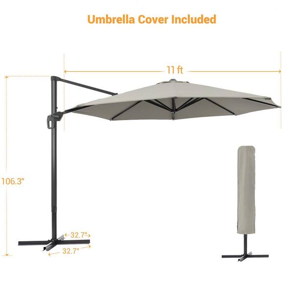 11 ft. Aluminum Cantilever Patio Umbrella Outdoor Offset Hanging 360° Rotation in Gray