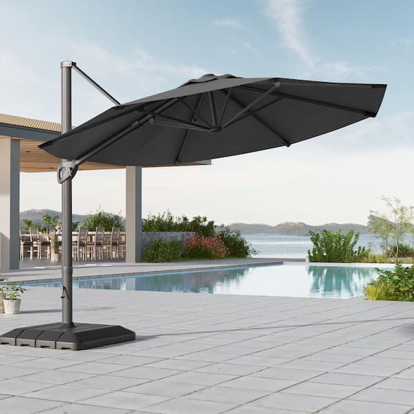 11 ft. Aluminum Outdoor Cantilever Patio Umbrella with a Base, Offset Hanging, 360° Rotation in Black