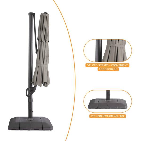 11 ft. Double Top Patio Hanging Octagon Cantilever Umbrella with 360° Rotating Canopy in Gray