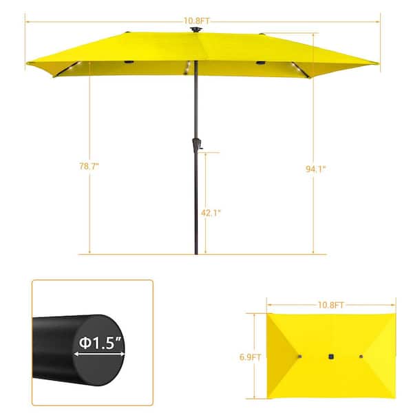 11 x 7 ft. Steel LED Large Double-Sided Rectangular Outdoor Market Patio Umbrella with Crank in Yellow