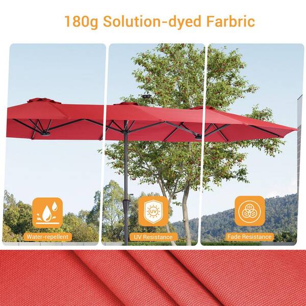 13 ft. x 7.2 ft. Steel Solar-Powered Double-Sided Market Patio Umbrella with Crank, Solar Panel in Chili Red
