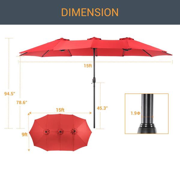 15 ft. x 9 ft. Outdoor Double-Sided Market Patio Umbrella with UPF50+ in Chili Red
