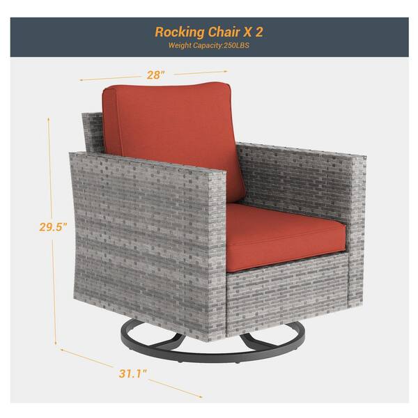 2-Piece Patio Furniture Conversation Set Gray Wicker Outdoor Rocking Chair Swiveling Set with Thick Cushion, Rust Red