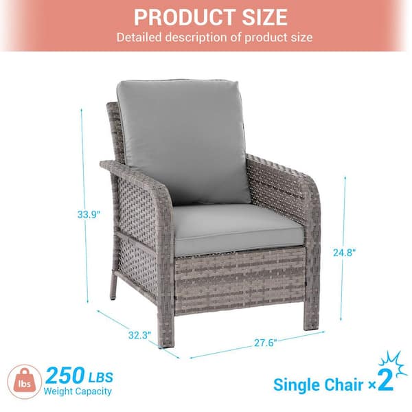 2-Piecess Outdoor Armchair Patio Conversation Set Patio Chairs Gray Wicker with Gray Cushion
