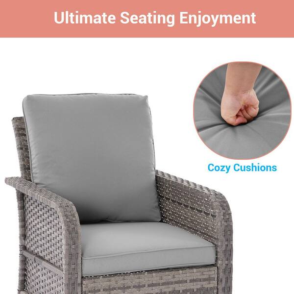 3 Pieces Outdoor Armchair Patio Conversation with Side Table Set Gray Wicker with Gray Cushion