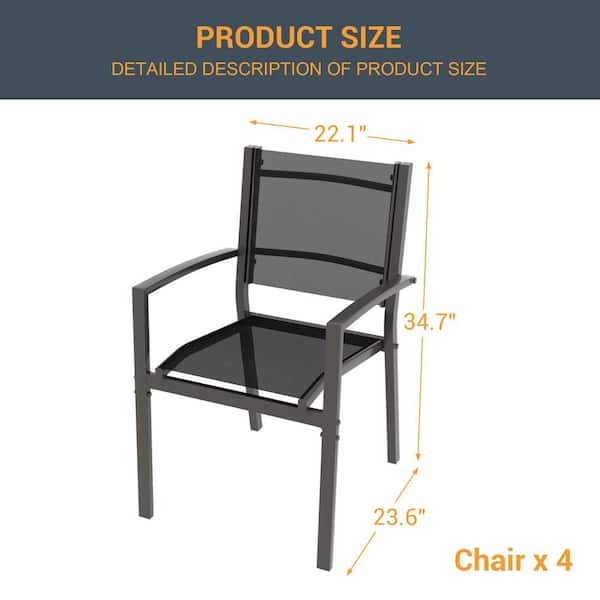 4-Piece Powder-Coated Steel Outdoor Patio Dining Chairs Breathable Textilene Chairs, Weather-Resistant, Black