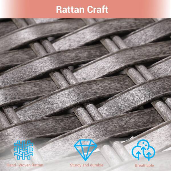 4 Pieces Patio Conversation Set with Coffee Table and Ottomans Gray Wicker Loveseat Sofa with Linen Grey Cushion