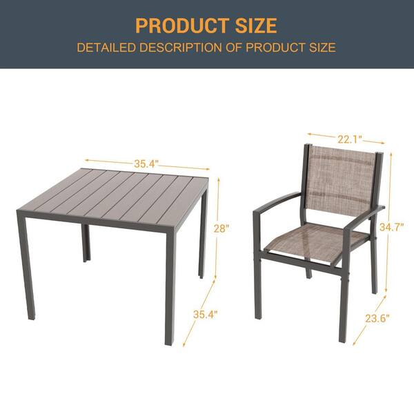 5-Piece Outdoor Dining Set with 4-Textilene Chairs and a Metal Square Table Featuring a HIPS Tabletop in Taupe