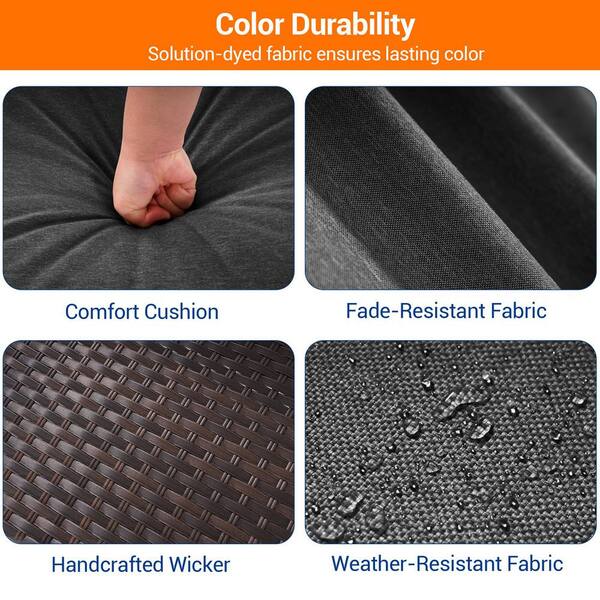 • Made of PE wicker, powder-coated steel frame and foam cushions