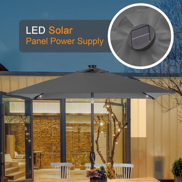6.5 ft. x 6.5 ft. LED Square Patio Market Umbrella with UPF50+, Tilt Function and Wind-Resistant Design, Gray