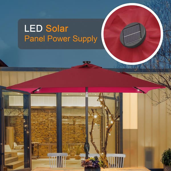 6.5 ft. x 6.5 ft. LED Square Patio Market Umbrella with UPF50+, Tilt Function and Wind-Resistant Design, Wine Red