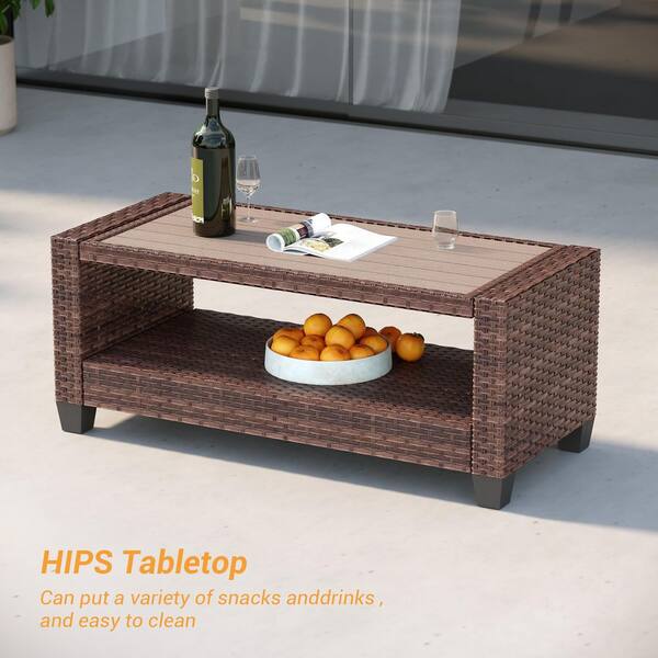 6-Piece Brown Wicker Outdoor Conversation Seating Sofa Set with Coffee Table, Linen Grey Cushions