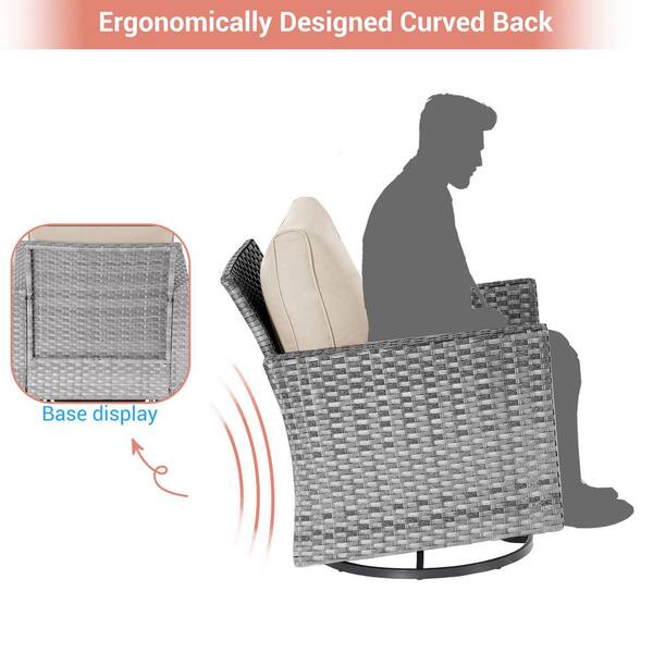6-Piecess Patio Conversation Set with 28 in. Fire Pit Table and Swivel Rocking Chairs, Gray Wicker Beige Cushion