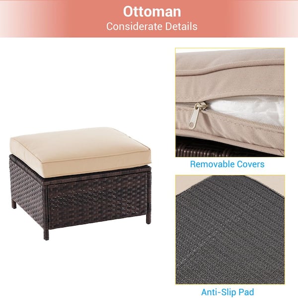 6-Piecess Patio Conversation Set with Square Fire Pit Table, Brown Wicker Wide Armrests Sofa with Sand Cushion