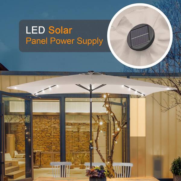 6 ft. x 9 ft. LED Rectangular Patio Market Umbrella with UPF50+, Tilt Function and Wind-Resistant Design in Sand