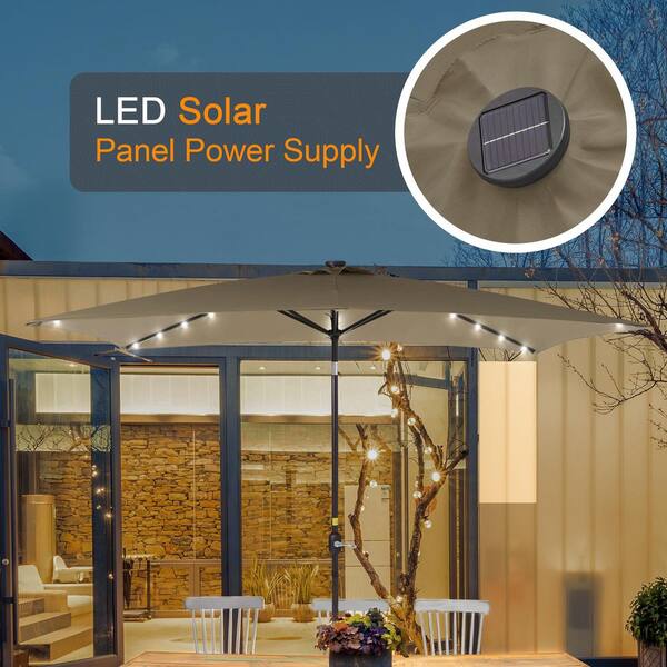 6 ft. x 9 ft. LED Rectangular Patio Market Umbrella with UPF50+, Tilt Function and Wind-Resistant Design in Taupe