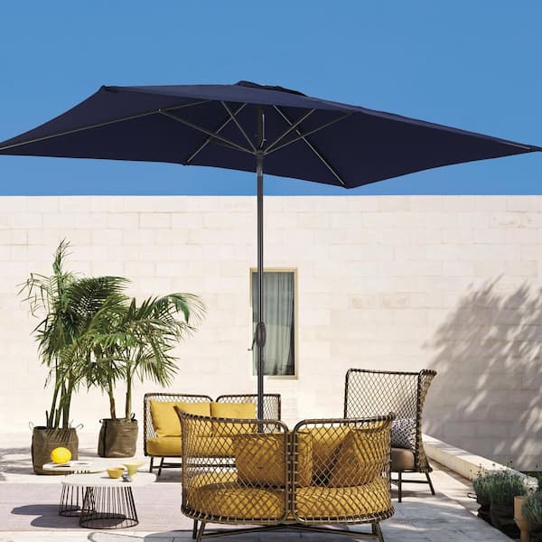 6 ft. x 9 ft. Rectangular Patio Market Umbrella with UPF50+, Tilt Function and Wind-Resistant Design, Navy Blue