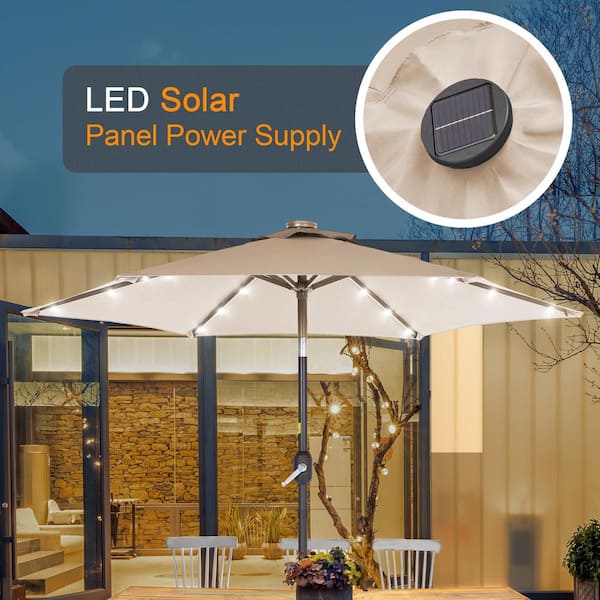 7.5 ft. Solar LED Patio Umbrellas With Solar Lights and Tilt Button Market Umbrellas, Beige