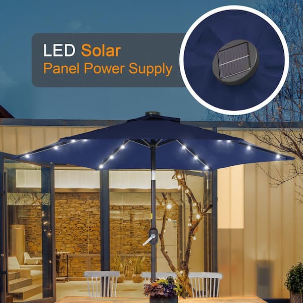 7.5 ft. Solar LED Patio Umbrellas With Solar Lights and Tilt Button Market Umbrellas, Navy Blue