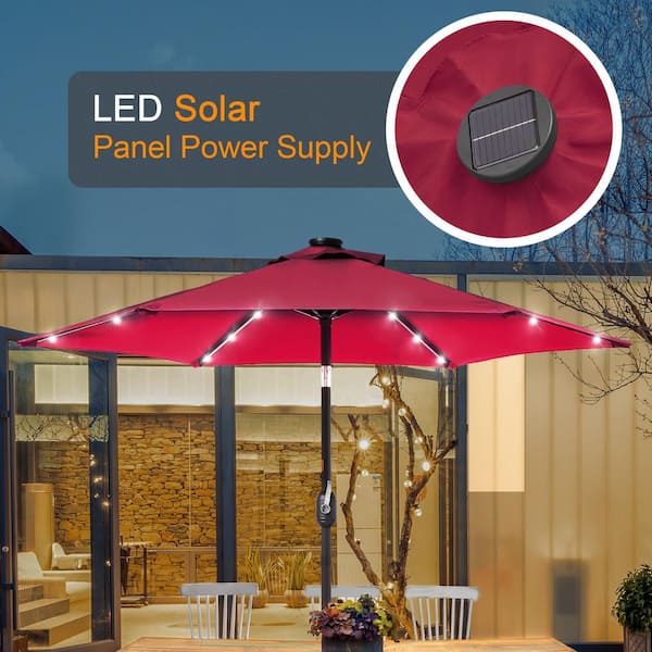 7.5 ft. Solar LED Patio Umbrellas With Solar Lights and Tilt Button Market Umbrellas, Red