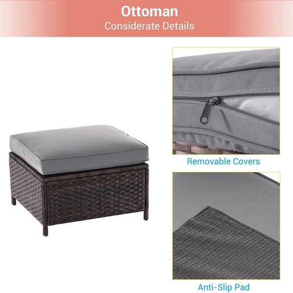 7-Pieces Patio Conversation Set with Glass Tabletop Side Table All-Weather Brown Wicker with Gray Cushions
