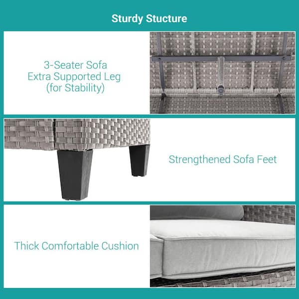 7-Pieces Patio Conversation Set with Loveseat Sofa and Side Table All-Weather Gray Wicker with Linen Gray Cushions