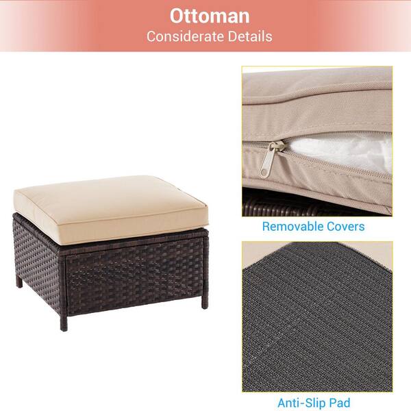 7-Piecess Patio Conversation Set with Square Fire Pit Table and Loveseat, Brown Wicker with Sand Cushions