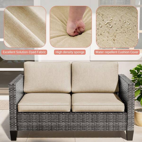 7-Piecess Patio Conversation Set with Square Fire Pit Table and Loveseat, Gray Wicker with Beige Cushions
