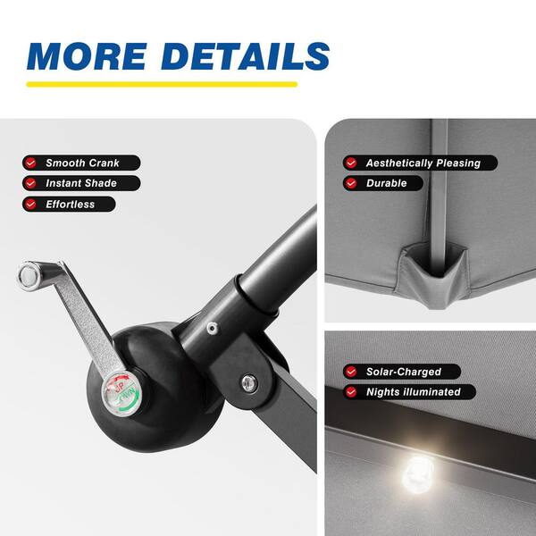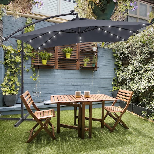 8.2 ft. Solar LED Steel Pole and Ribs Square Outdoor Cantilever Offset Hanging Patio Umbrellas in Gray